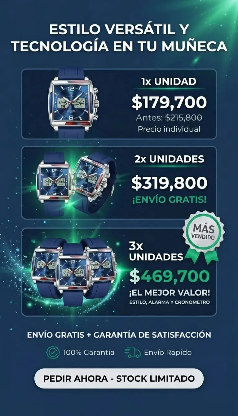 Este modelo incorpora un sistema Dual Time con movimiento digital y analógico de alta precisión, ideal para quienes necesitan funcionalidad y estilo en un solo reloj.